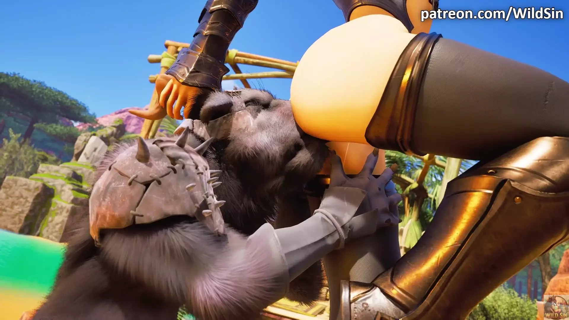 Satyr Fucks The Black Knight Ass And Pussy